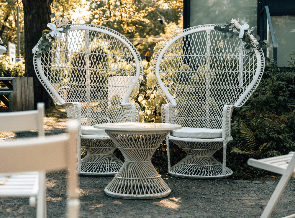 Weiße Holzstühle für die Trauung